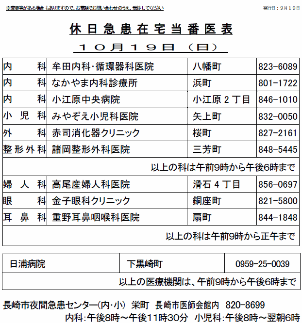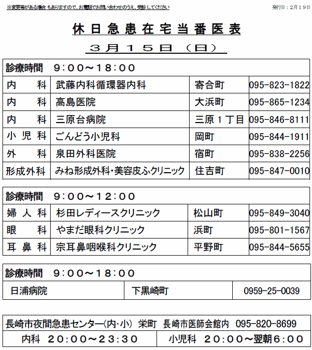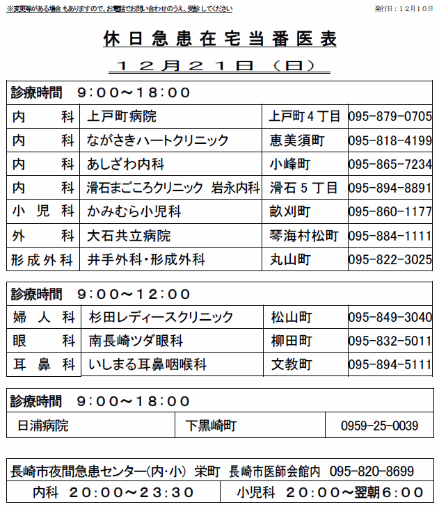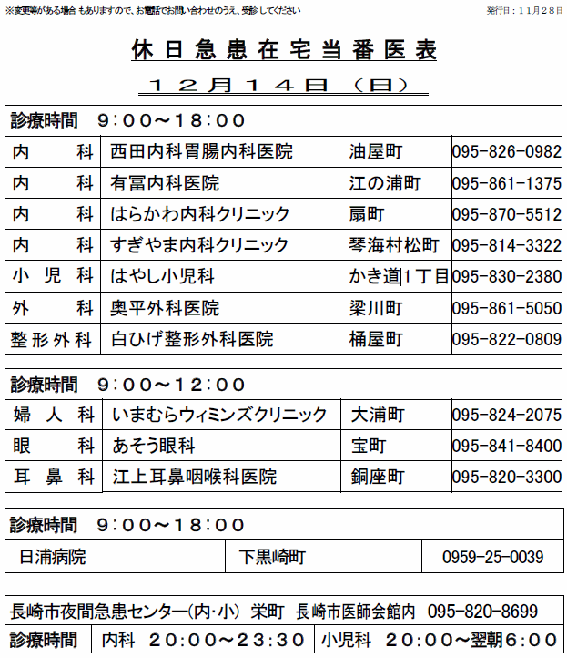 休日当番薬局を掲載(長崎市薬剤師会)