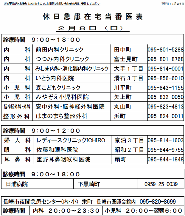 :短縮電話番号 ♯8000 ※繋がらない方、及び一部地域(松浦市鷹島町、福島町)の方は 095-822-3308 |