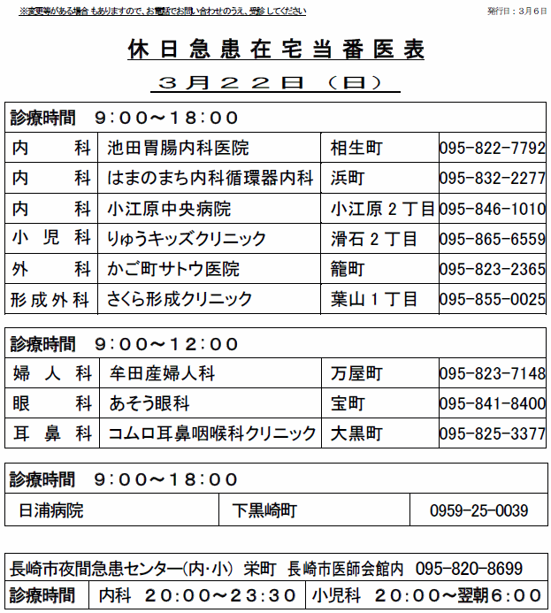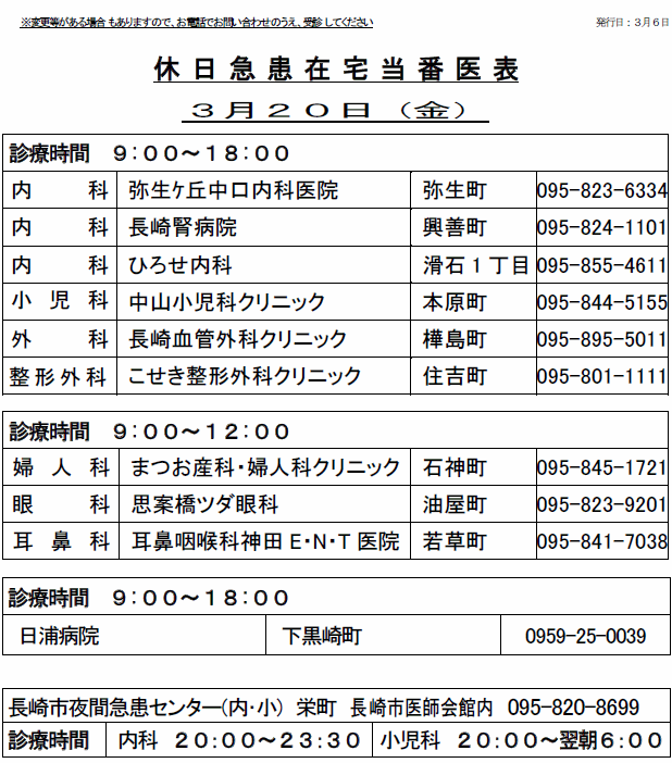 夜間等において軽症な場合に応急の医療を行っています(長崎市医師会)
